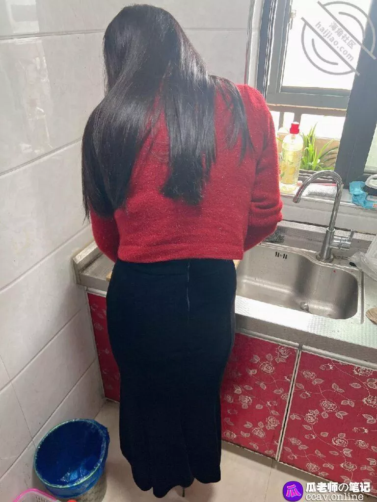 我站在厨房门口跟我姐聊天,她没注意到我偷拍到她,看着我姐的扔沟,真大